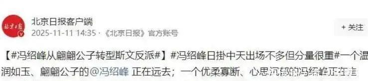分开四年了,这样体面的一面,可不是普通前任能办到的。这不算重新在一起,实在是——成年人之间,最后那份温存。如今冯绍峰已经彻底翻身:演得棒,口碑也不错,商业价值相当高。网友甚至开始反向调侃:总算赶上了赵丽颖的节奏。虽然说得有点夸张,但也不完全没有道理——他的转变,肉眼都能看得出来。